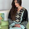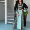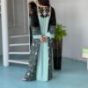 Summer Jalabya, floral green w/ flower embroidery, linen materials