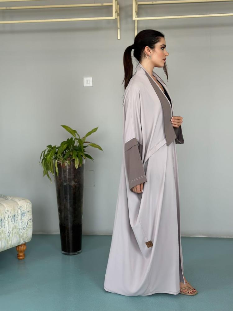 Colored Abaya, “A line style glossy blue with black crepe materials”