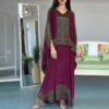 Modern Jalabya, Cotton materials floral beige w/ blue on hand