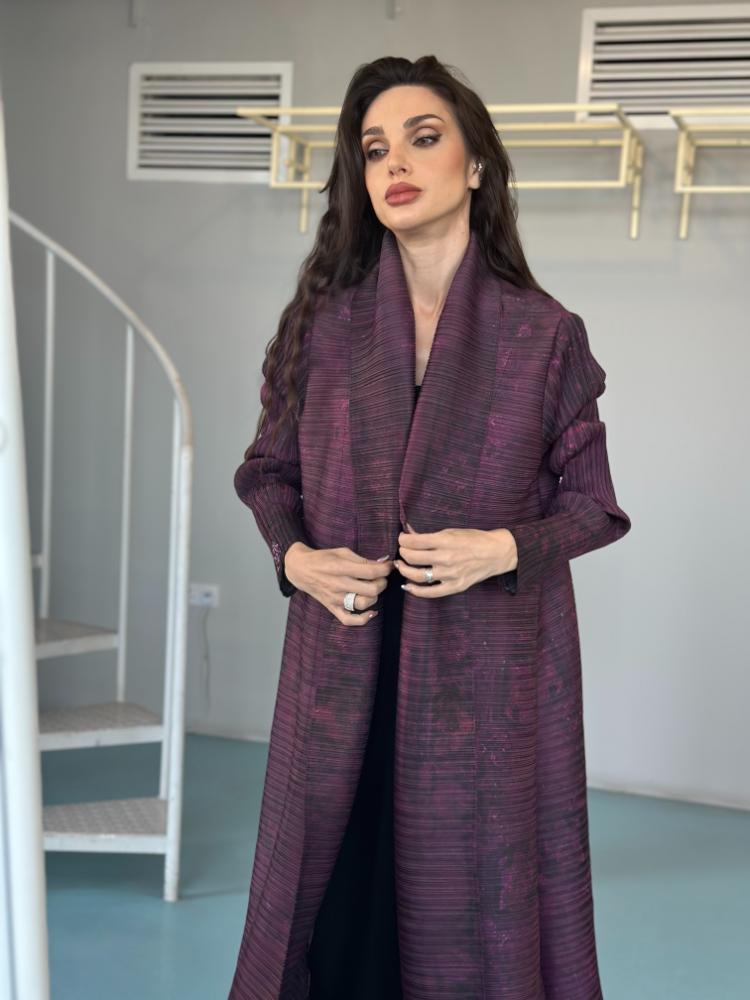 Embroi Abaya, Aqua marine crepe with big pearl botton