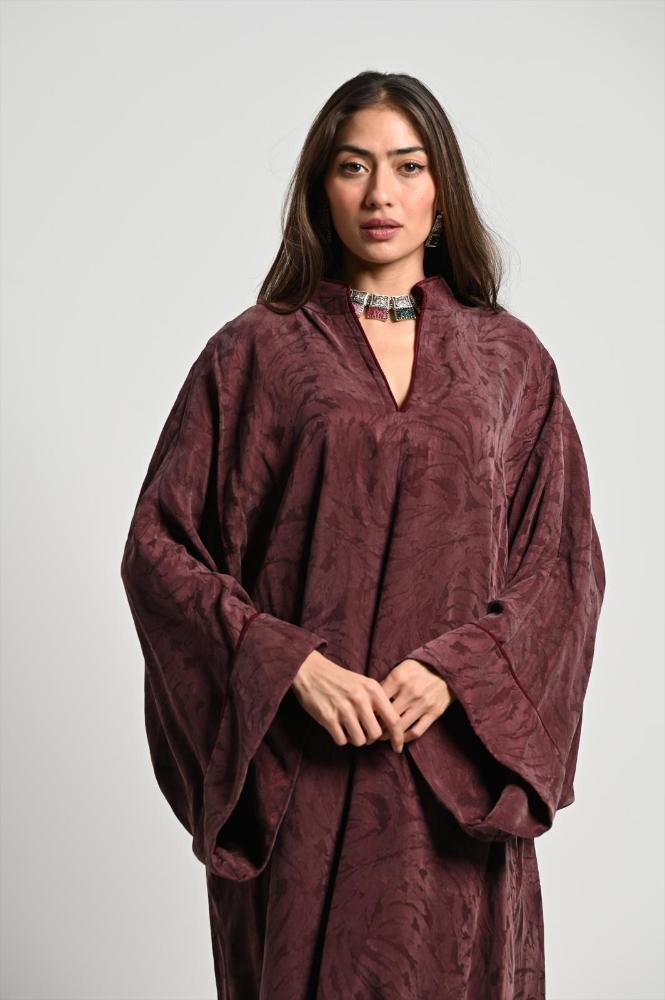 Floral close neck Jalabya, chiffon materials