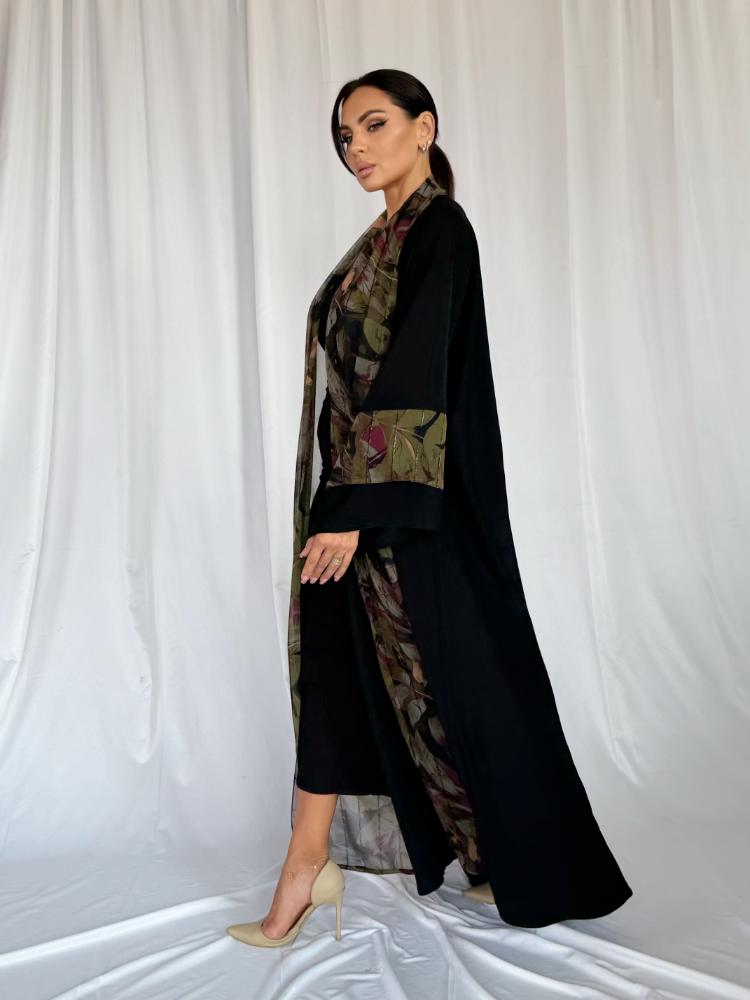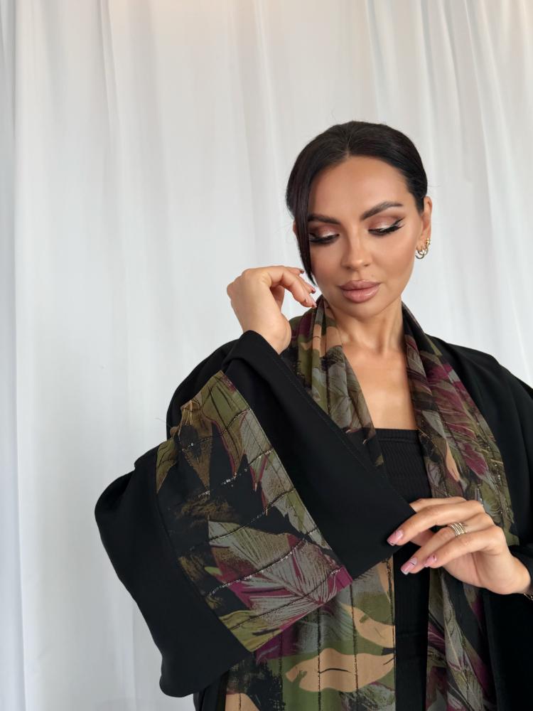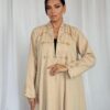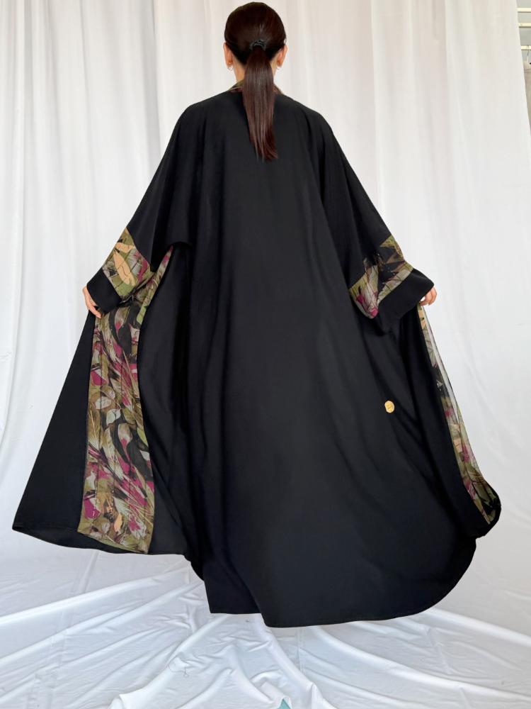Embroi Abaya, Aqua marine crepe with big pearl botton