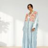 Modern Jalabya, Cotton materials floral beige w/ blue on hand