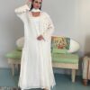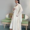 Printed Abaya, “neon yellow linen with white piece on hand & front”