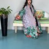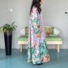 Embroi Abaya, Aqua marine crepe with big pearl botton