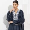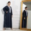 Modern Abaya, Stripe w/ white embroidery, linen cotton materials