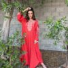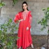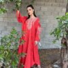 Open Arms Jalabiya with flower embroidery, Cotton linen materials