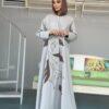 Printed Abaya, “neon yellow linen with white piece on hand & front”