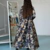 Printed Abaya, “neon yellow linen with white piece on hand & front”