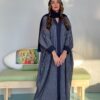 Corduroy Abaya, Stripe navy blue with navy blue piece on hand