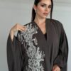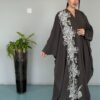 Embroi Abaya, Aqua marine crepe with big pearl botton