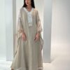 Summer Jalabya, floral green w/ flower embroidery, linen materials