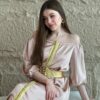 Long Caftan, lower side flower embroidery w/ belt