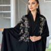 Colored Abaya, “A line style glossy blue with black crepe materials”