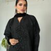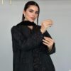 Embroi Abaya, Aqua marine crepe with big pearl botton
