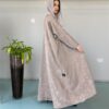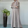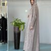 Printed Abaya, “neon yellow linen with white piece on hand & front”