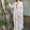 Embroi Abaya, Aqua marine crepe with big pearl botton