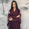 Corduroy Abaya, Stripe navy blue with navy blue piece on hand