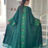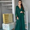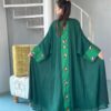 Colored Abaya, “A line style glossy blue with black crepe materials”