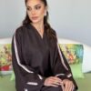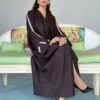 Printed Abaya, “neon yellow linen with white piece on hand & front”