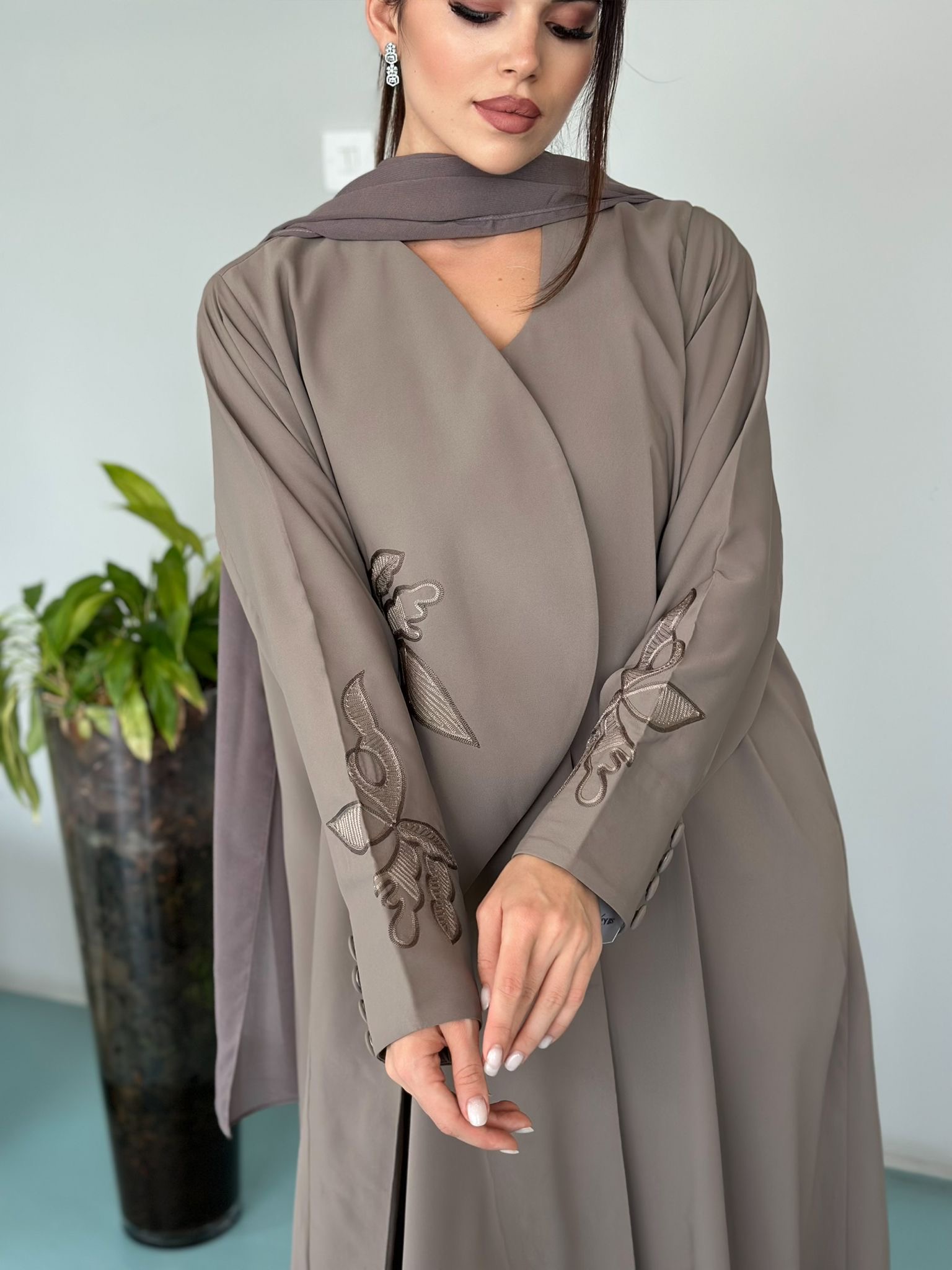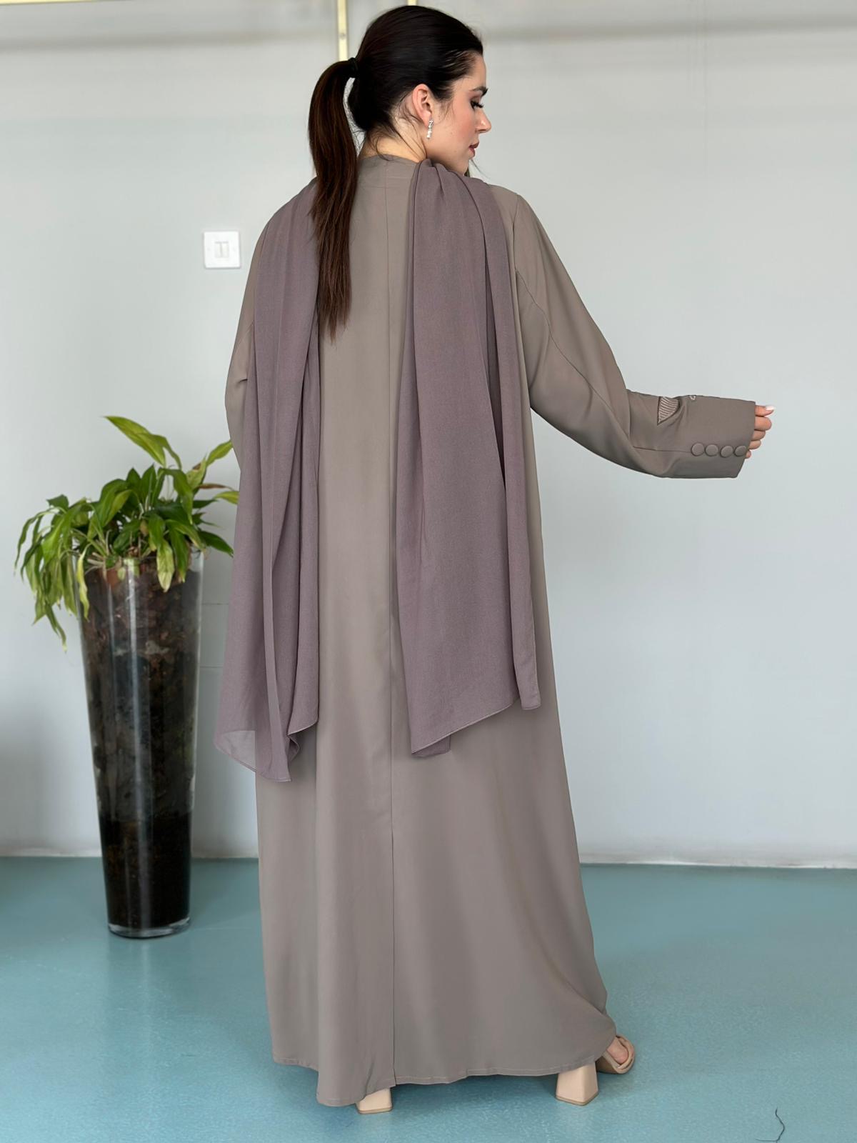 Colored Abaya, “A line style glossy blue with black crepe materials”