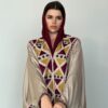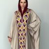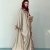 Embroi Abaya, Aqua marine crepe with big pearl botton