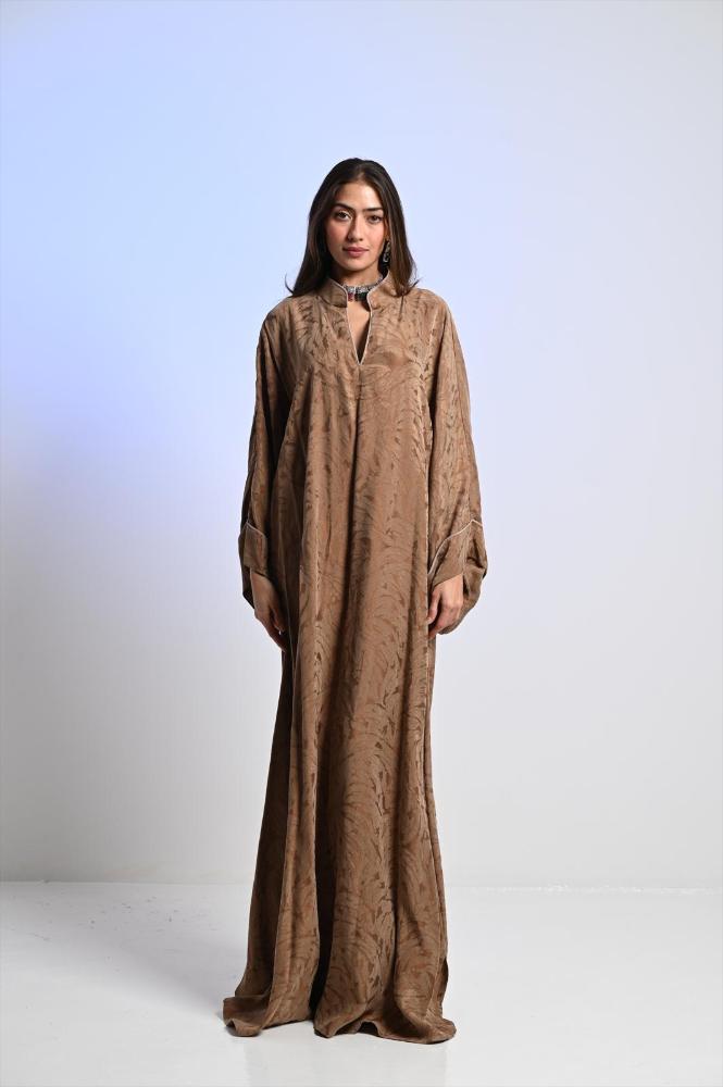 Floral close neck Jalabya, chiffon materials