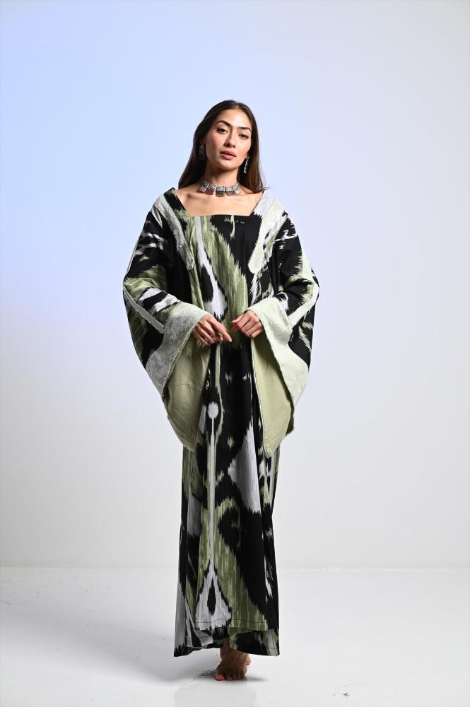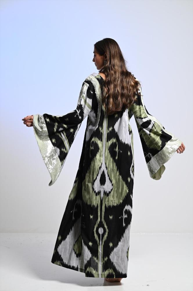 Summer Jalabya, floral green w/ flower embroidery, linen materials