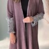 Hoodie Winter Bisht “Hemp blue with bronze velvet lining beaded front & on hand”