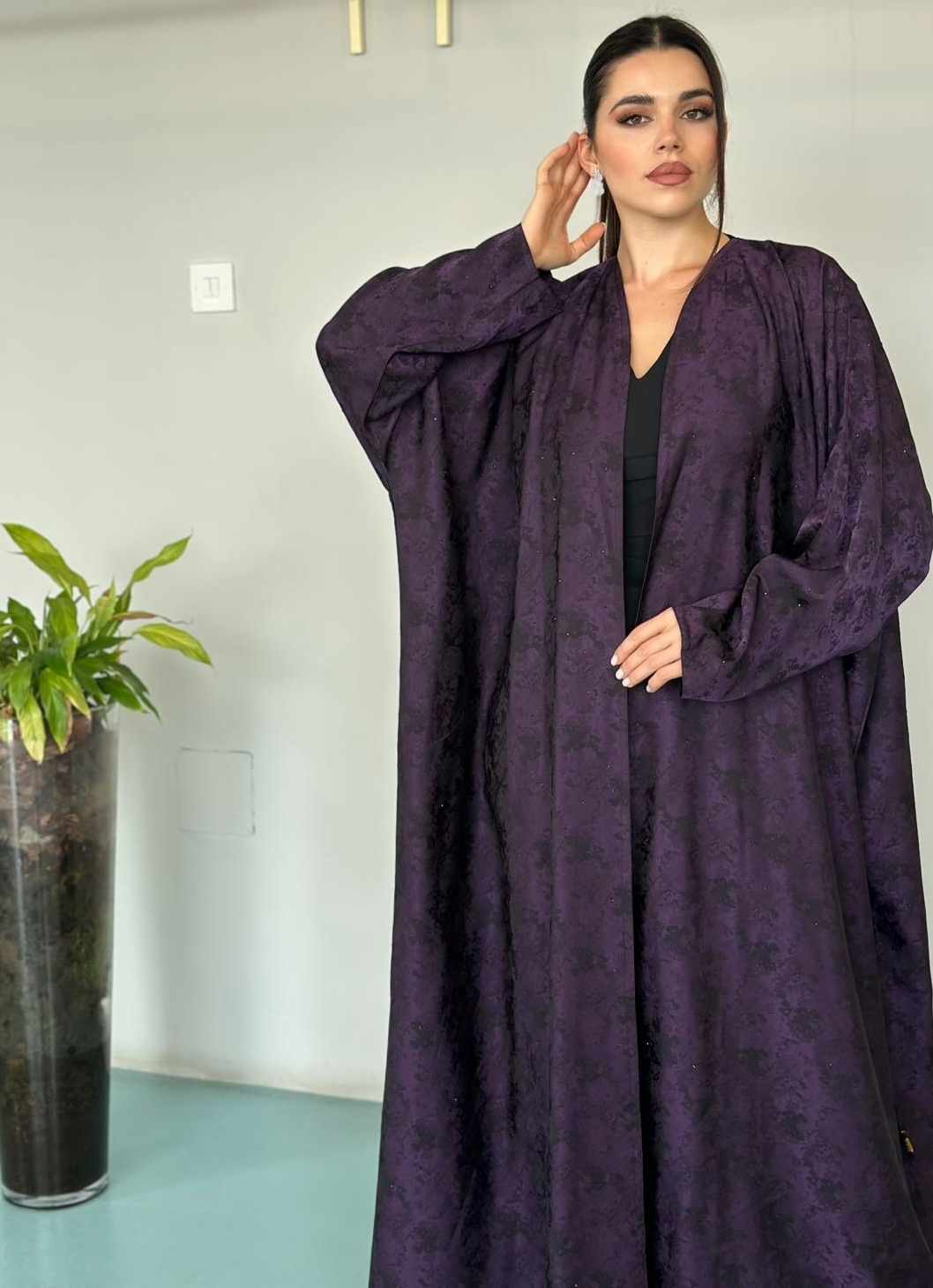 Colored Abaya, “A line style glossy blue with black crepe materials”