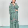 Printed Abaya, “neon yellow linen with white piece on hand & front”