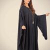 Embroi Abaya, Aqua marine crepe with big pearl botton