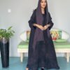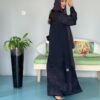 Embroi Abaya, Aqua marine crepe with big pearl botton