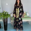 Printed Abaya, “neon yellow linen with white piece on hand & front”