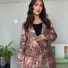 Silk Coat with golden lines black beads