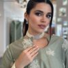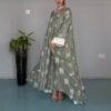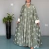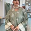 Summer Jalabya, floral green w/ flower embroidery, linen materials