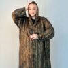Printed Abaya, “neon yellow linen with white piece on hand & front”