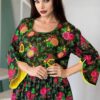 Summer Jalabya, floral green w/ flower embroidery, linen materials