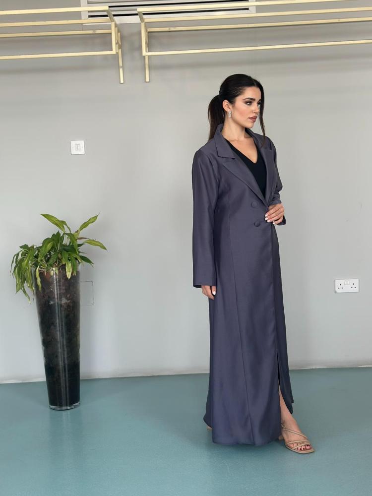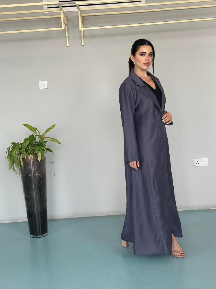 Flakes Winter Coat Shaded gray on turquoise w/ white embroi