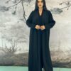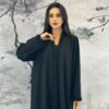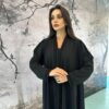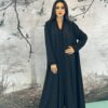 Embroi Abaya, Aqua marine crepe with big pearl botton