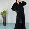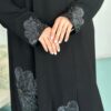 Embroi Abaya, Aqua marine crepe with big pearl botton
