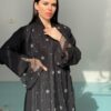 Colored Abaya, “A line style glossy blue with black crepe materials”