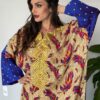 Modern Jalabya, Cotton materials floral beige w/ blue on hand