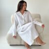Top & Trousers w/ native button w/ big pockets, Linen materials