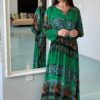 A line Dress, Cream on crepe Floral embroidery