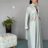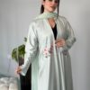 Embroi Abaya, Aqua marine crepe with big pearl botton