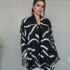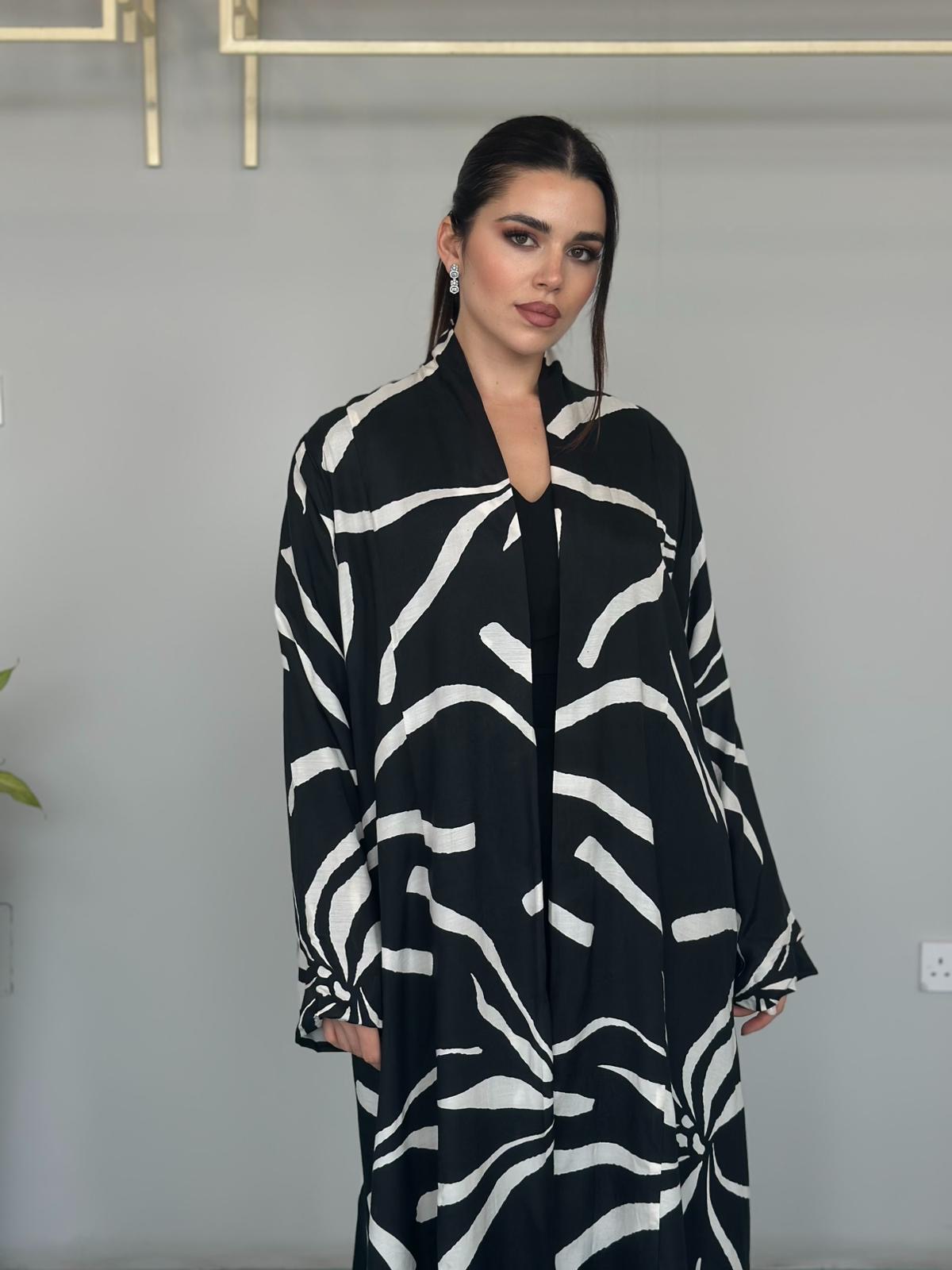 Printed Abaya, “neon yellow linen with white piece on hand & front”