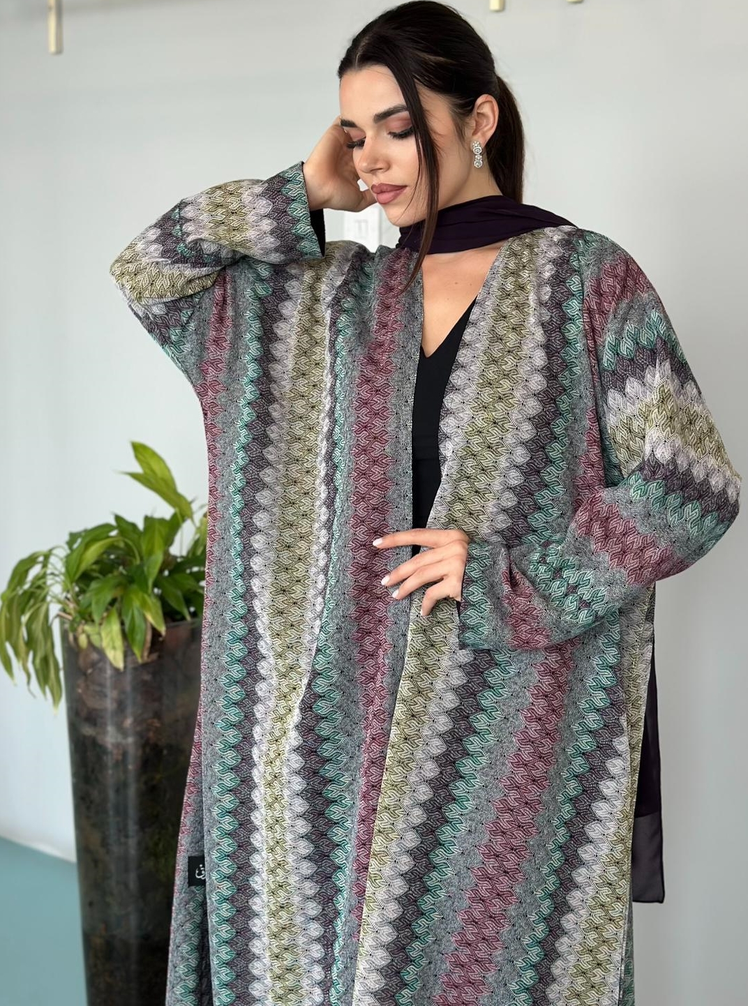Cardigan with golden cord and Clutch bag, Nylon materials