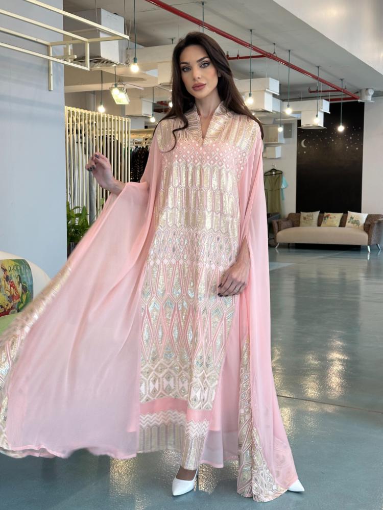 Modern Jalabya, cotton material w/ Moroccan embroidery