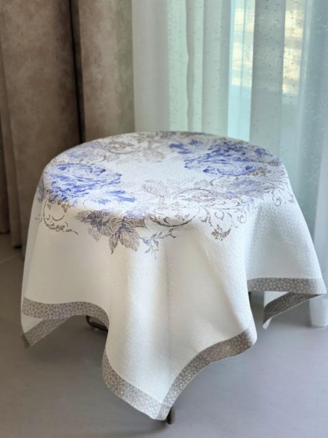 Table cloth with intricate design, Margo 250, Linen materials